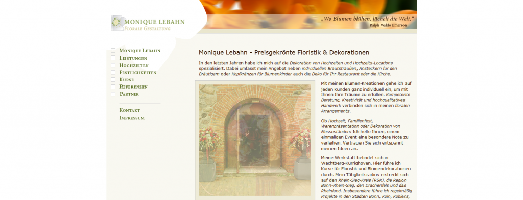 Am statischen Internetauftritt der Floristin Monique Lebahn aus Wachtberg bei Köln führte websolutions kept simple eine umfangreiche Suchmaschinenoptimierung durch.